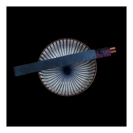 Cette image évoque une composition d’une grande pureté visuelle et symbolique : le bol, forme du vide et du réceptacle, et les baguettes, instruments du geste et de l’action, réunis dans un équilibre silencieux.