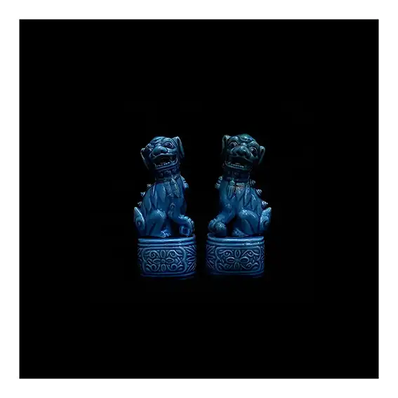 Ces deux dragons chinois en porcelaine, fêlés puis réparés, se tiennent côte à côte dans la lumière.